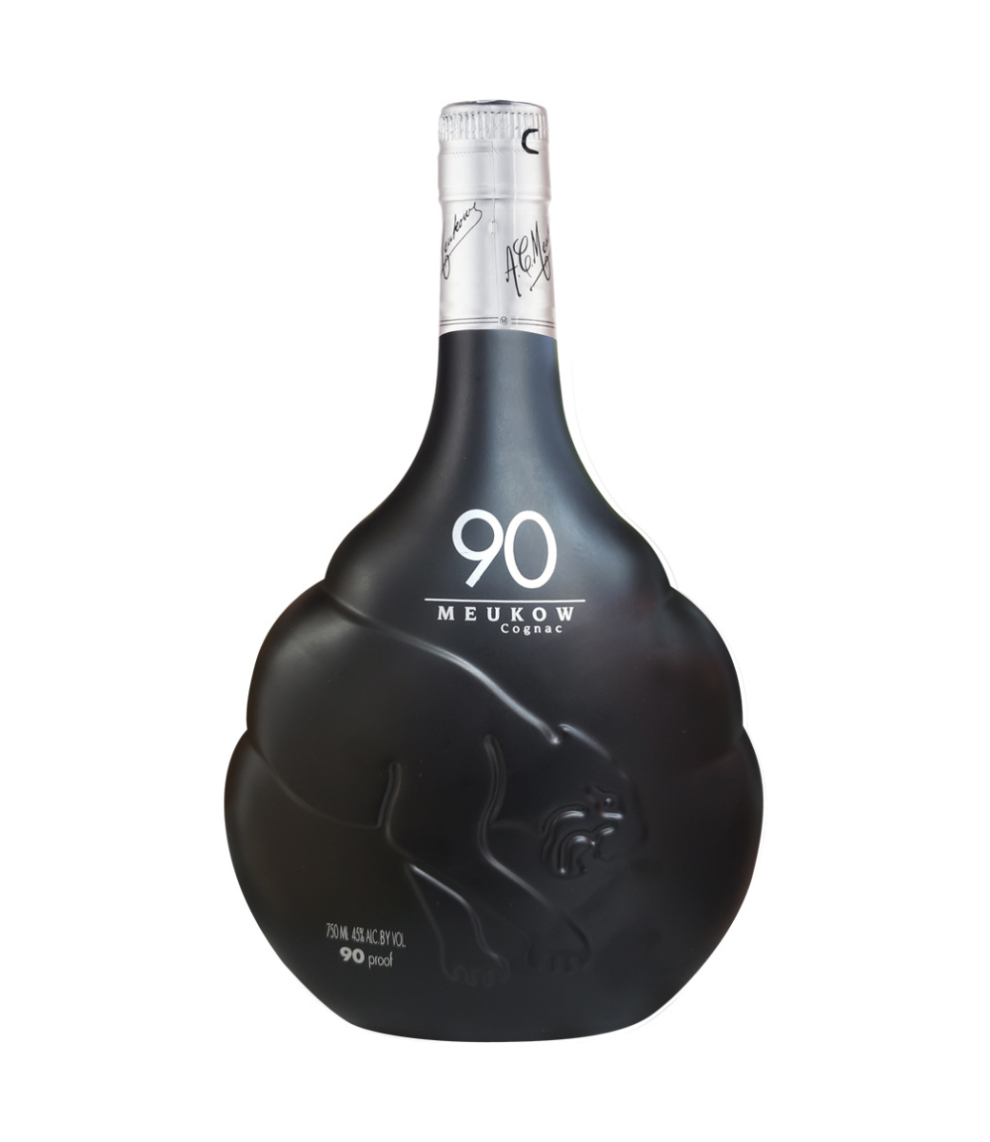 Sticla neagra si catifelata prezinta pantera brandului. Cand este privita la lumina, pantera capata o nuanta de chihlimbar. Un astfel de design nobil atrage atentia imediat! Potrivit producatorului Meukow, acesta este singurul cognac cu 45% Vol., echivalentul a 90 grade. De aici provine numele sau, Meukow 90.
