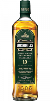 Irish whiskey-ul single malt Bushmills 10 Year Old este un triplu distilat din orz 100% maltuit si maturat timp de cel putin 10 ani in butoaie condimentate cu sherry si bourbon, care ii conferă băuturii arome de miere, vanilie si ciocolata cu lapte. Bushmills 10 Year Old poate fi caracterizat drept un whisky irlandez foarte elegant, care oferă un finish excepțional de catifelat.