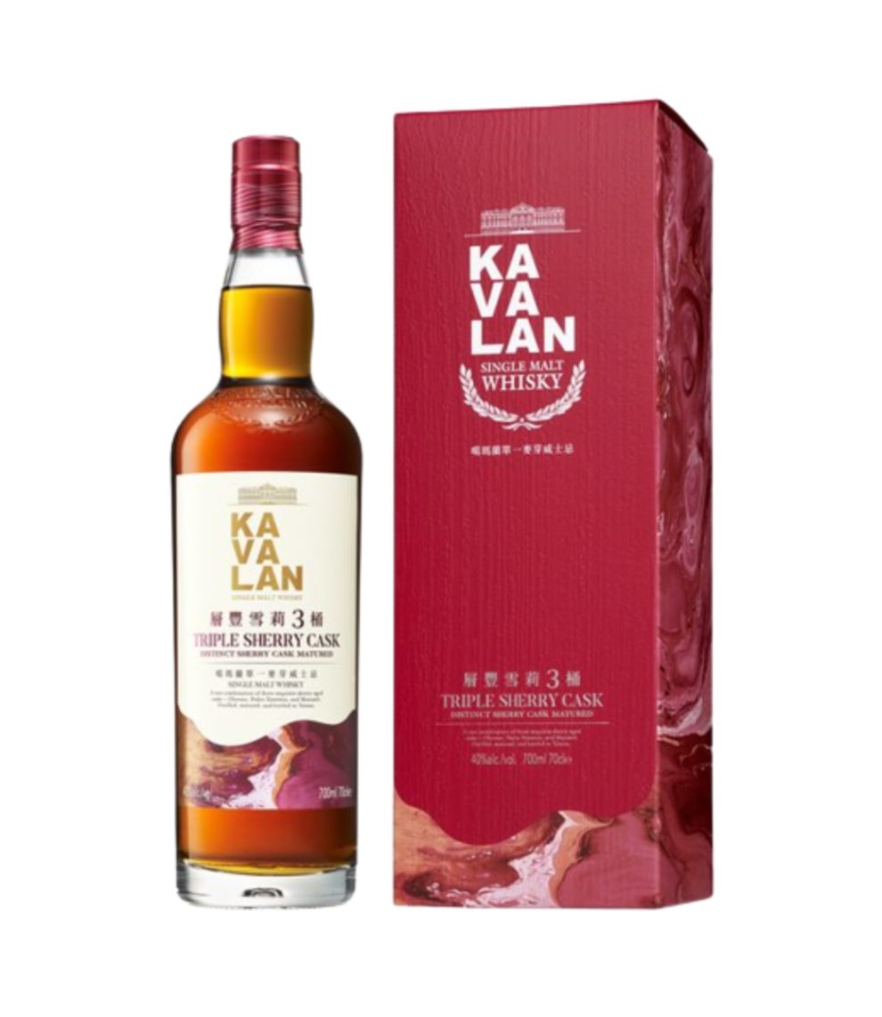Kavalan Triple Sherry Cask Whisky este o bautura premium single malt care prezinta cele mai bune dintre cele trei butoaie distincte de sherry – Oloroso, Pedro Ximénez si Moscatel.